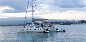 “The men of coco are officially anchored in Gambier among 11 other boats. The islands are gorgeous we are surrounded by about 7 that rise sharply out of the water. They feel deserted compared to Galapagos and Rapa Nui. We are tucked in nice and snug behind a reef to get ready for the big winds coming in tomorrow for a few days.”