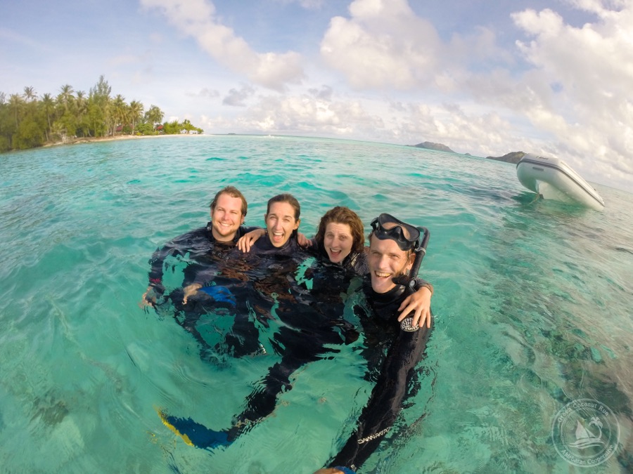 We motored the dinghy carefully through the pass to take our first swim outside of the barrier reef in Gambier. As soon as I had jumped over the side to scope it out, I was leaping halfway out of the water like a dolphin exclaiming “Holy Guacamole it’s incredible!!!!”