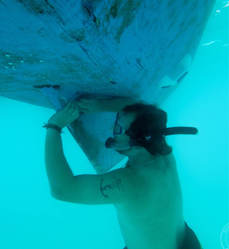 In the morning we took a dive: what a relief! There were deep scratches to the paint, and a few small nicks to the fiberglass, but nothing significant. “Battle scars”, one could say, and we put some underwater epoxy on the deeper nicks.