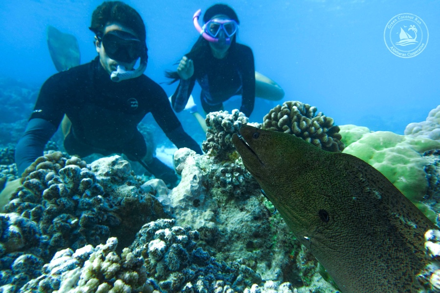 “They’ll defend their territory if you get too close without realizing,” they warn. The Morays hide deep within the rocky reefs, and they don’t like visitors encroaching on their doorway.