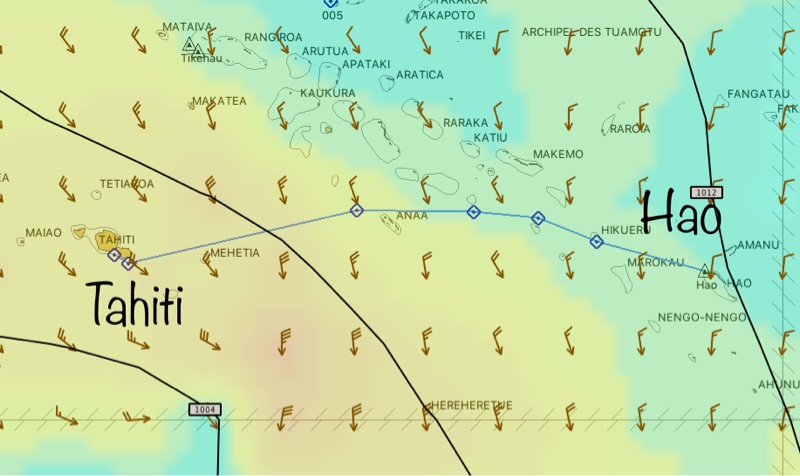 NAVIGATION NOTE: Counter-intuitively, the light breeze we had is much better than no breeze. If the wind is totally calm (close to zero) it creates a mirror-like surface on the water, and it’s nearly impossible to see hazards below. In fact, when we are navigating across unsurveyed lagoons, it is much easier to see coral bommies and underwater hazards when the wind is strong, as the wavelets and color contrast become more evident. Dead calm conditions can spell disaster and the common understanding is that it’s best to stop the boat and wait for the wind to return.
