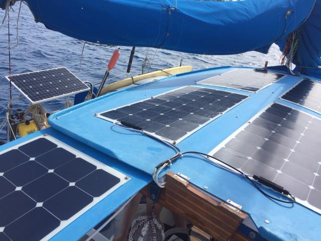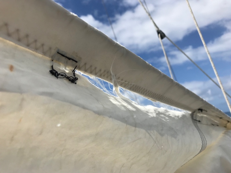 This photo illustrates the issues of “visibility”. The glare of the sun (left side of frame) makes going into the sun impossible, compared to where the sun is shining onto (right side of frame). Also compare this photo with the lighting in the photo above with Sabrina holding the VHF, which is into the sun — it is much darker and hard to see. Hence, we must always enter new reef passes and navigate inside unsurveyed lagoons with a favorable angle to the sun. Ideally, when the sun is high (10am-2pm is best) and also slightly behind to prevent glare, can we then see the hazardous shallow coral bommies. This ‘timely precision’ is hard to achieve on a sailboat, given the shifts in weather… making this one of the great challenges of navigating in Tuamotos archipelago.