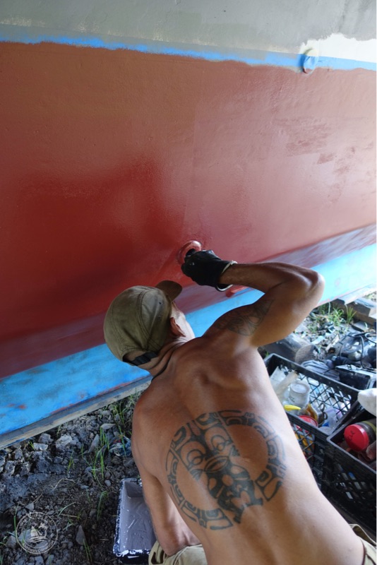 “Pray that it is sunny,” I told Sabrina. Our repairs need sunshine – so that wood could dry, fiberglass could adhere, and paint could be applied. This was a tall order given that the Marquesas had experienced five straight months of the rainiest weather locals have seen. Cruisers we talked to were horrified it was dumping rain non-stop during the supposedly “dry” months of January to May. And now we were in the “wet” months of June-August! Luckily, the weather flipped a switch and the rain stopped the week we entered the boatyard. This was nothing short of a miracle.