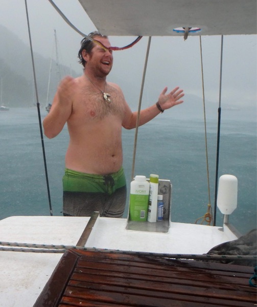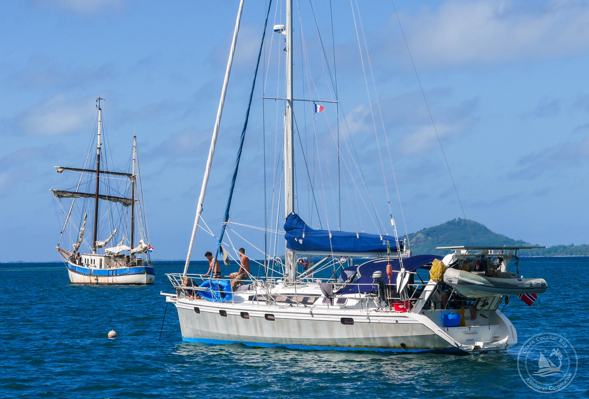 The cyclone season in South Pacific is between November and April, so everyone tries to arrive at the very end of that period. The result is that the anchorages in the Marquesas, which are already narrow due to their depth, can become downright crowded. Weird huh?