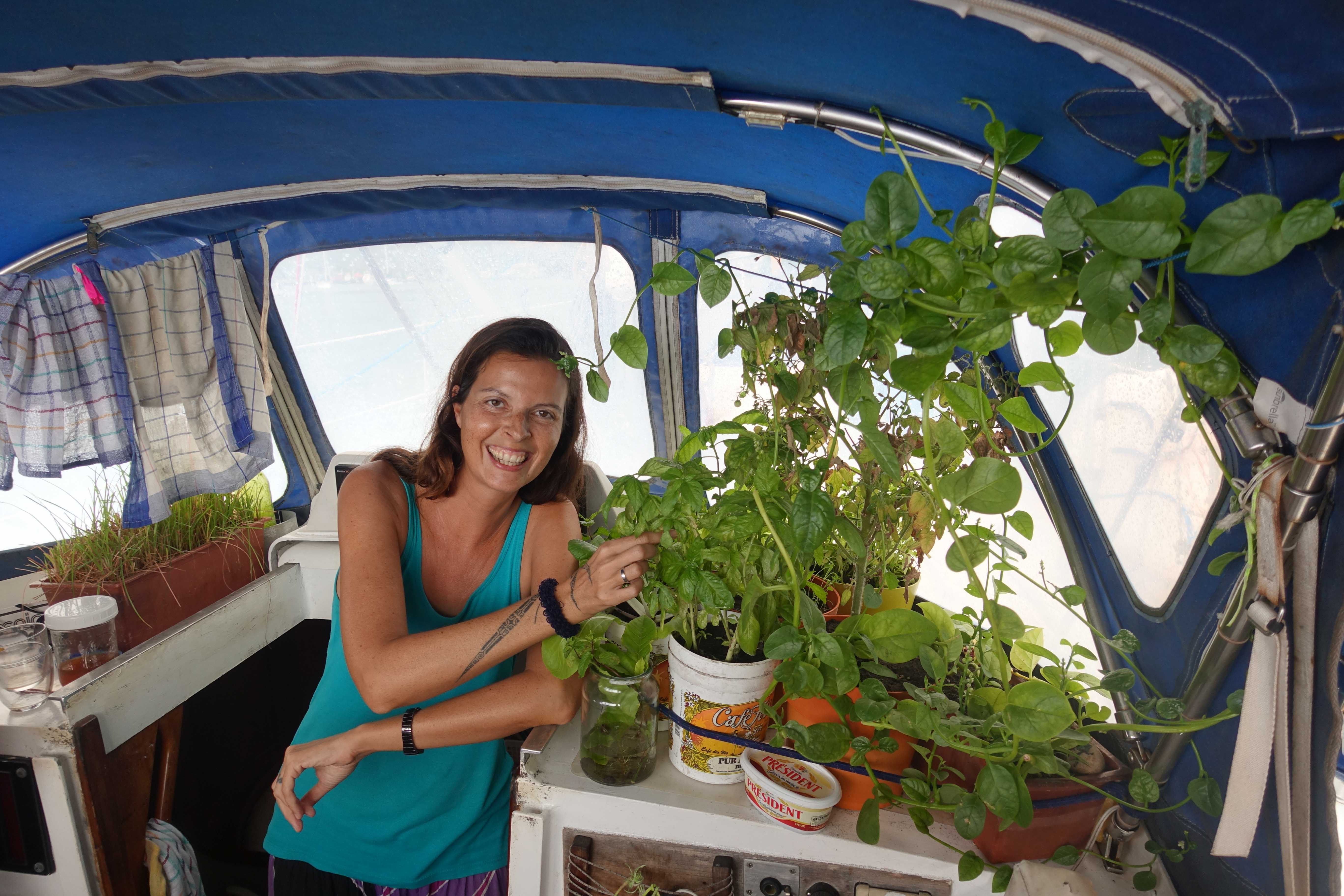 This is Birgit and her garden in Pitufa; along with partner Christian, they are Austrians cruising French Polynesia for four years already. Each of their plants comes from a different archipelago, it seems!