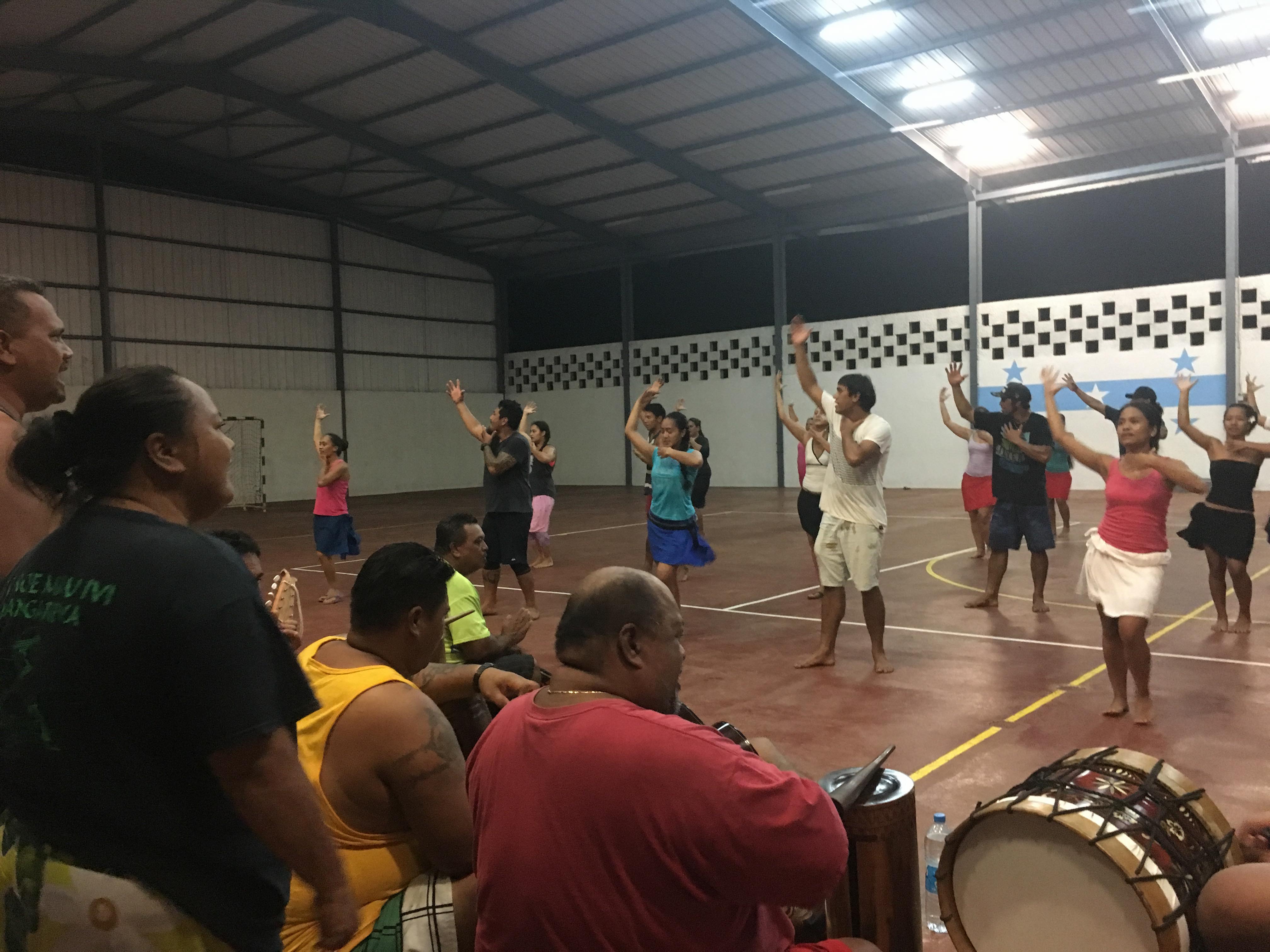 At the end of the evening we migrated to the next door gymnasium where the nightly Drum & Dance practice is being conducted. They are preparing for the Bastille Day festival in Papeete, where they will represent Gambier (more on this later!)